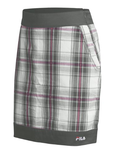 Fila Golf Geneva Plaid Skort- Flat front Cotton wrinkle resistant skort with Cotton Sateen wide waistband and hem, left side hidden zipper, FILA logo embroidered on front left hem. Skort is made from recycled polyester is an fabric which has been manufactured from 100% recycled pop bottles. This unique recycling process converts post-consumer plastics into high quality performance yarns, making the fabric extremely soft, imported.